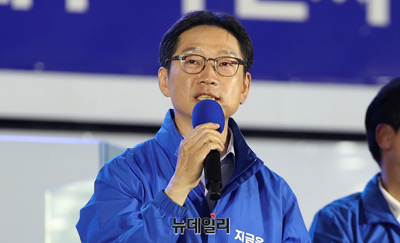 김경수 총괄선대위원장이 제21대 대통령 선거를 하루 앞둔 2일 오후 서울 여의도 공원에서 열린 이재명 더불어민주당 대선 후보 유세현장에서 발언하고 있다.