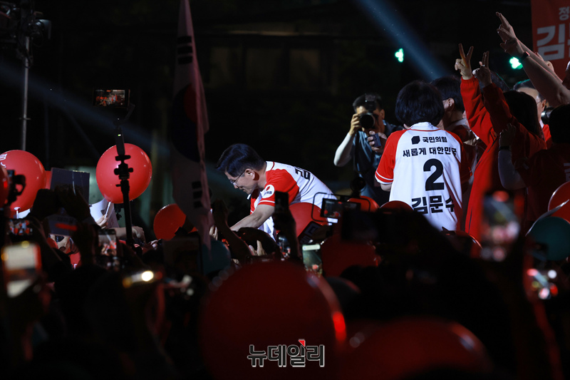 김문수 국민의힘 대선 후보가 제21대 대통령 선거를 하루 앞둔 2일 오후 서울광장에서 열린 피날레 유세에서 지지를 호소하고 있다.