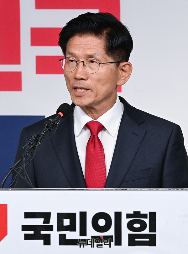 제21대 대통령 선거에서 이재명 더불어민주당 대선 후보의 당선이 확실시된 4일 오전 김문수 국민의힘 대선후보가 서울 여의도 국민의힘 중앙당사에서 대선 패배 승복 기자회견을 하고 있다
