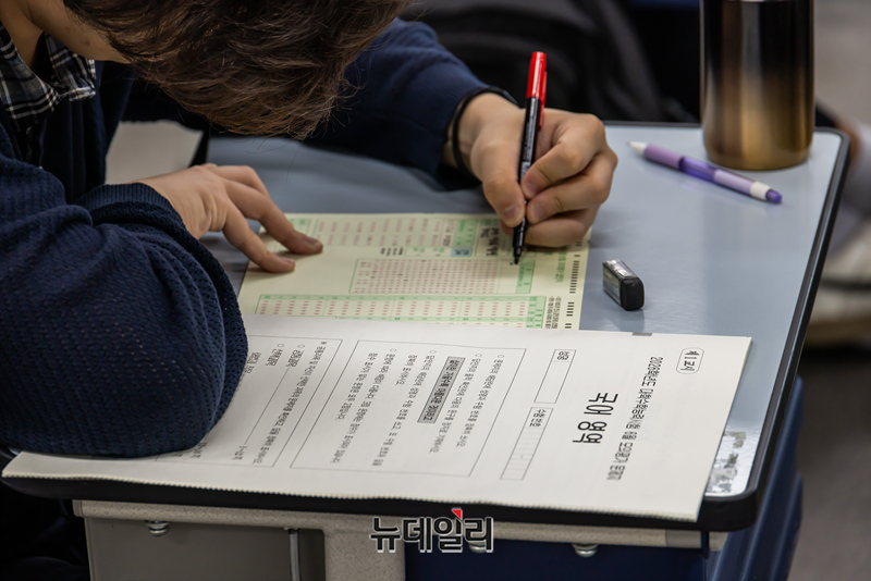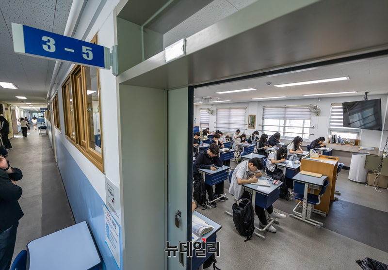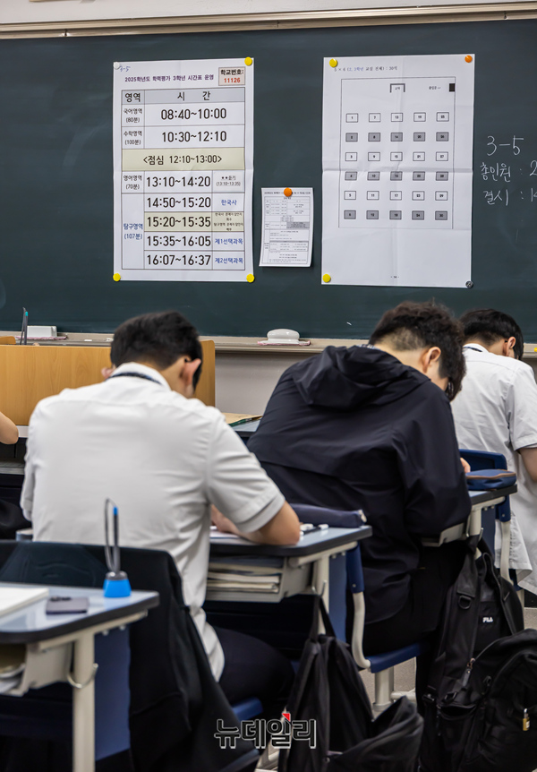 대학수학능력시험 6월 모의평가 시행일인 4일 오전 서울 금천구 금천고등학교에서 학생들이 시험 준비를 하고 있다. (사진=공동취재단)