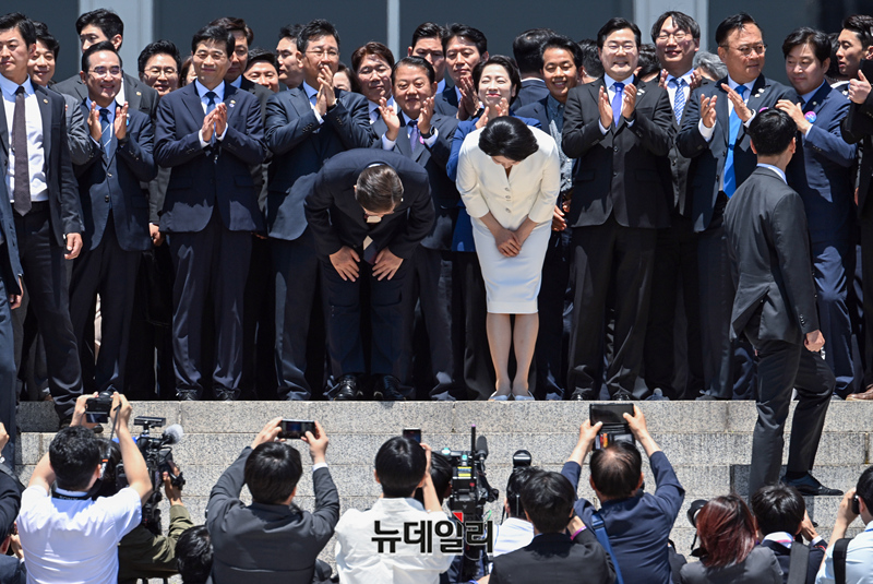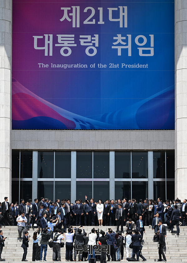 [포토] 취임선서 마치고 국회 떠나는 이재명 대통령 내외