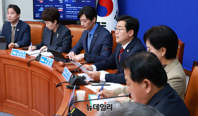 박찬대 더불어민주당 당대표 직무대행 겸 원내대표가 5일 오전 국회에서 열린 최고위원회의에서 발언하고 있다.