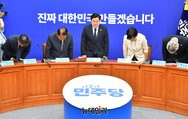 박찬대 더불어민주당 당대표 직무대행 겸 원내대표가 9일 국회에서 열린 최고위원회의에 참석하고 있다.