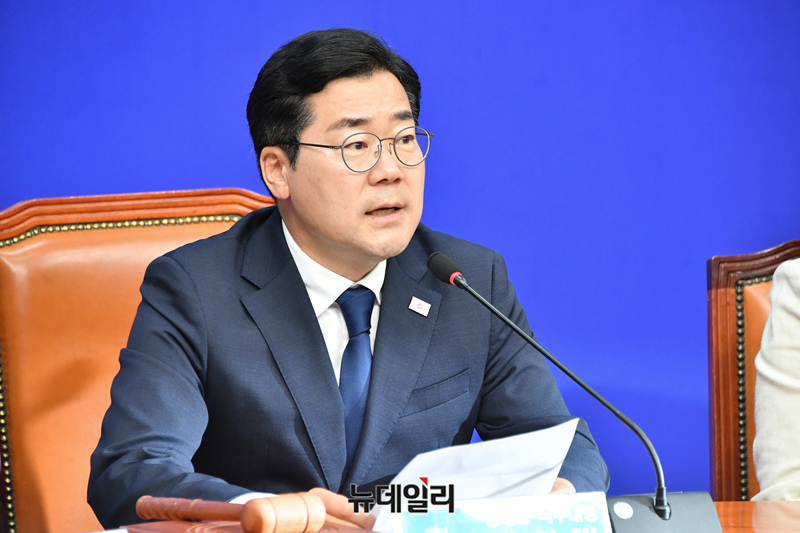 박찬대 더불어민주당 당대표 직무대행 겸 원내대표가 9일 국회에서 열린 최고위원회의에 참석해 모두발언을 하고 있다.
