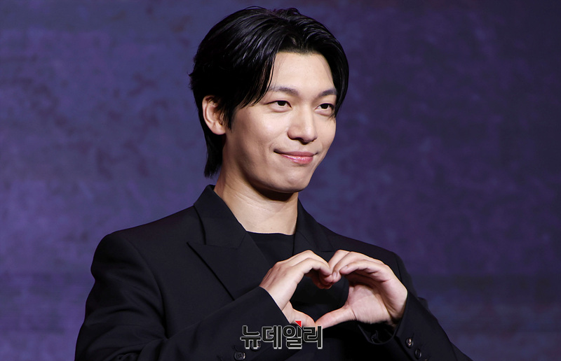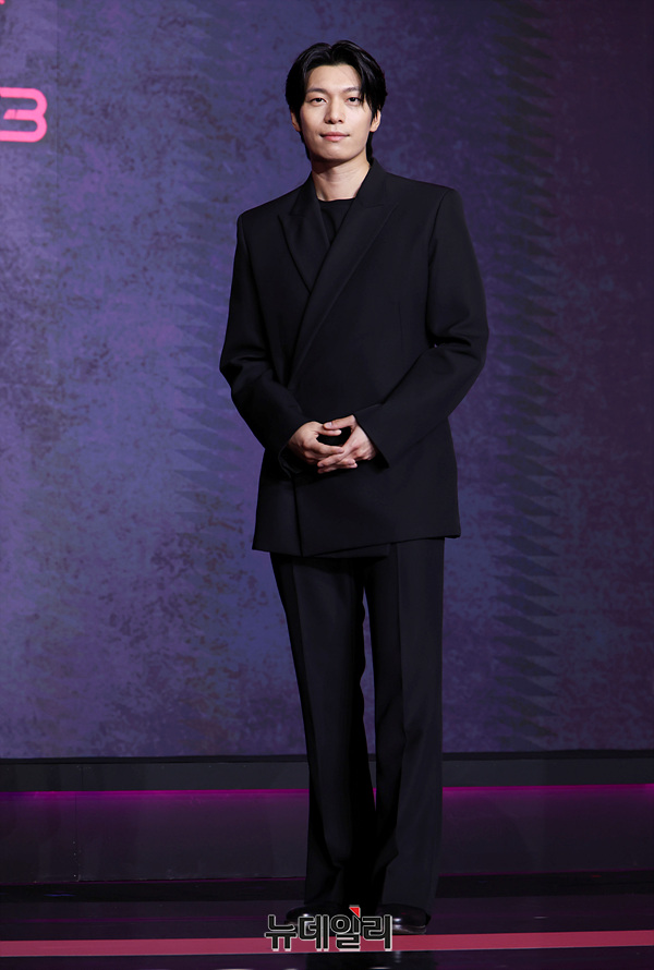 배우 위하준이 9일 오전 서울 용산구 드래곤시티에서 열린 넷플릭스 시리즈 '오징어 게임 시즌 3' 제작발표회에서 포즈를 취하고 있다.