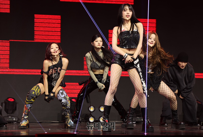 KISS OF LIFE(키스오브라이프)가 9일 오후 서울 광진구 예스24 라이브홀에서 열린 미니 4집 '224' 쇼케이스에서 수록곡 'k bye' 무대를 선보이고 있다.