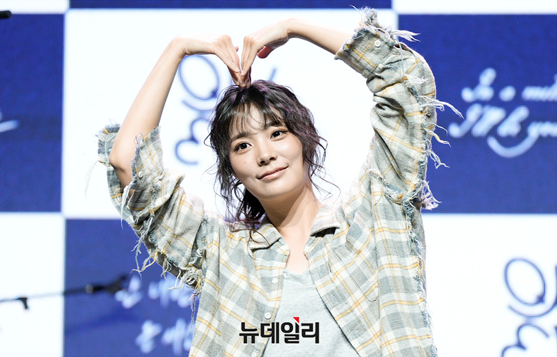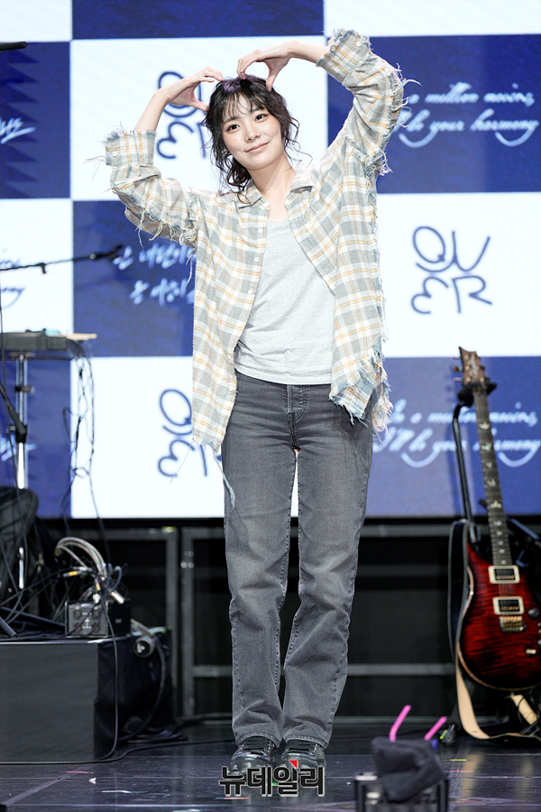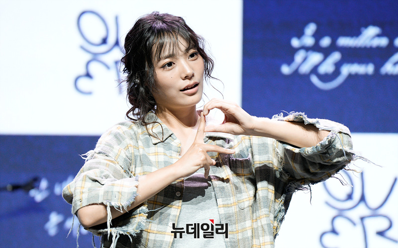 걸밴드 QWER 시연이 9일 오후 서울 마포구 예스24 원더로크홀에서 열린 QWER 미니 3집 발매 기념 미디어 쇼케이스에서 포즈를 취하고 있다.