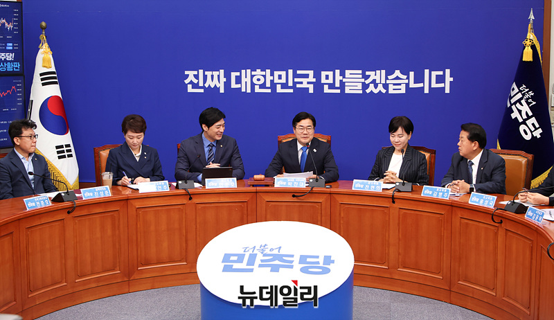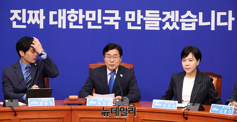 박찬대 더불어민주당 당대표 직무대행이 13일 오전 국회에서 열린 최고위원회의에서 발언하고 있다.
