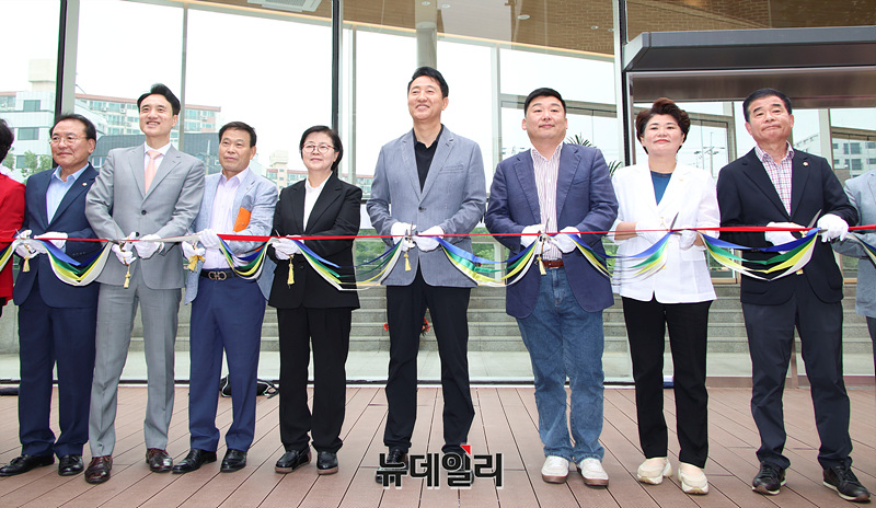 오세 서울시장이 16일 오전 서울 강북구 우이천에서 열린 '우이천 수변활력거점 조성사업' 준공식에서 테이프커팅을 하고 있다.
