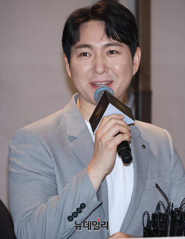 테너 이기업이 16일 오후 서울 중구 더플라자 호텔에서 '제1회 조수미 국제 성악 콩쿠르' 위너스 프레스콜에서 인사말을 하고 있다.최근 프랑스 문화예술훈장 최고 등급인 코망되르 상을 수상한 조수미는 직접 선발한 차세대 성악가들과 함께 콘서트를 개최한다.중후한 음색과 감성적인 표현력으로 주목받는 중국 출신 성악가 '지하오 리 (바리톤)', 감미로운 리릭 테너로, 유럽 주요 오페라 극장에서 활약 중인 '조르주 비르반 (테너)', 안정적인 발성과 뛰어난 음악성으로 유럽 오페라 무대에서 활동 중인 한국 출신 테너 '이기업 (테너)', 섬세한 표현력과 빛나는 고음이 돋보이는 프랑스 출신 성악가 '줄리엣 타키노 (소프라노)'가 조수미와 함께 무대에 오른다.콘서트는 6월 19일 전주 한국소리문화의전당을 시작으로 21일 성남아트센터 오페라하우스, 22일 서울 롯데콘서트홀, 24일 춘천문화예술회관에서 각각 열린다.
