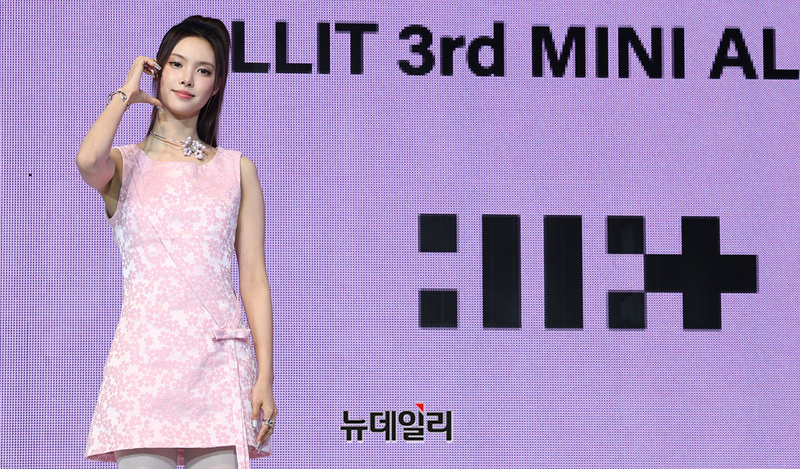 걸그룹 아일릿 윤아가 16일 오후 서울 광진구 예스24 라이브홀에서 열린 미니3집 'bomb(밤)' 쇼케이스에서 포즈를 취하고 있다.