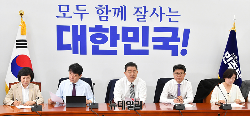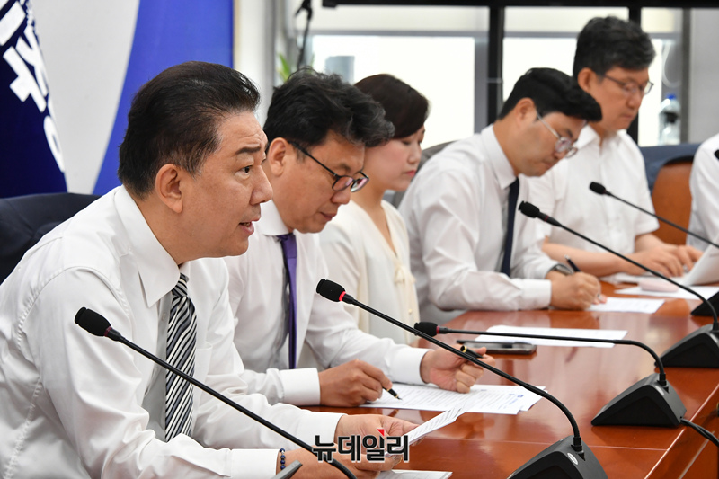 김병기 더불어민주당 대표 직무대행 겸 원내대표가 17일 오전 국회에서 열린 원내대책회의에 참석해 모두발언을 하고 있다.