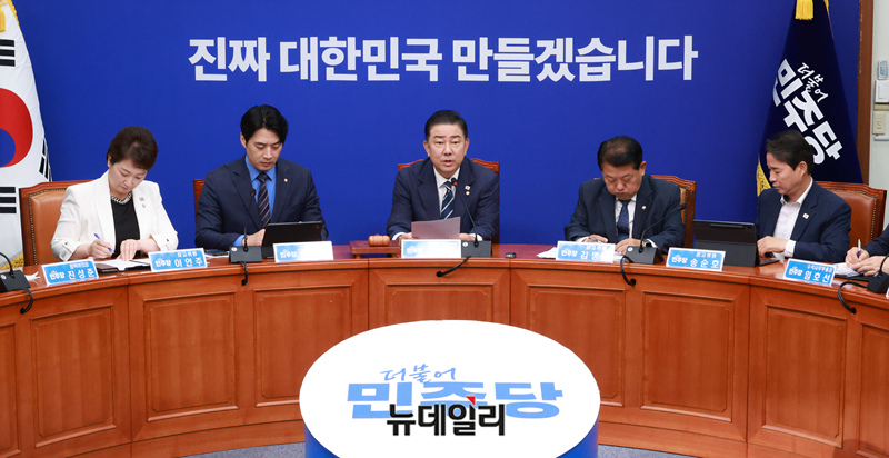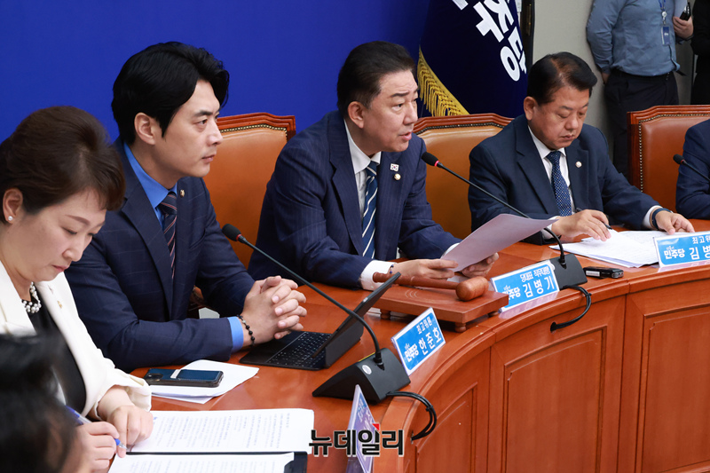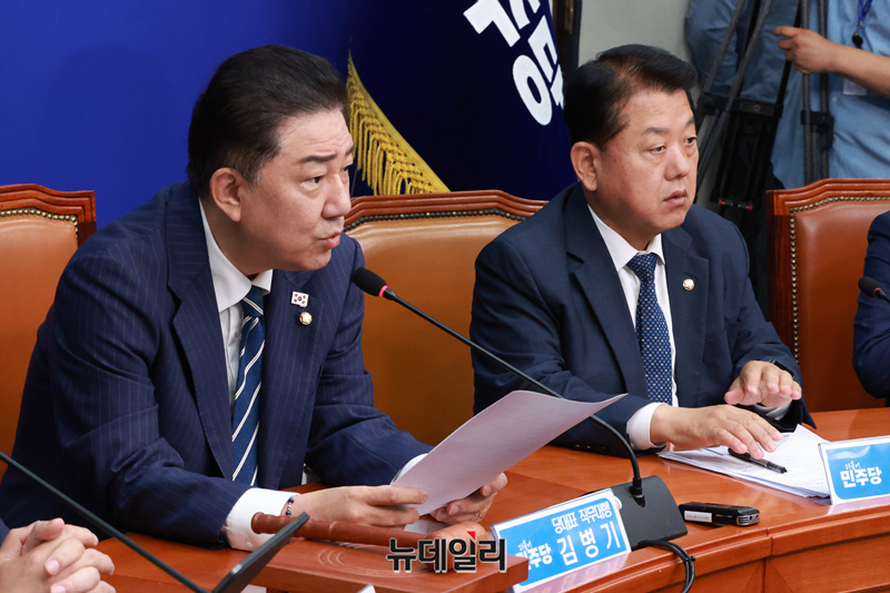 김병기 더불어민주당 대표 직무대행 겸 원내대표가 18일 오전 국회에서 열린 최고위원회의에 참석해 모두발언을 하고 있다.