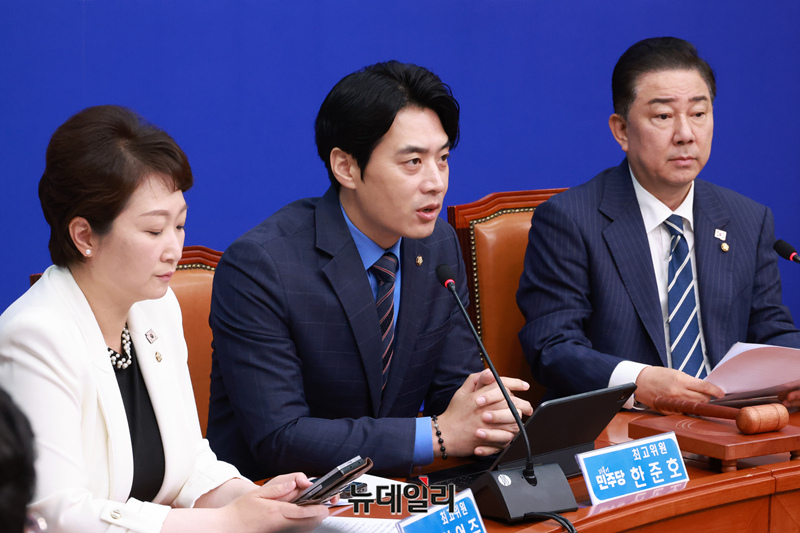 한준호 더불어민주당 최고위원이 18일 오전 국회에서 열린 최고위원회의에 참석해 모두발언을 하고 있다.