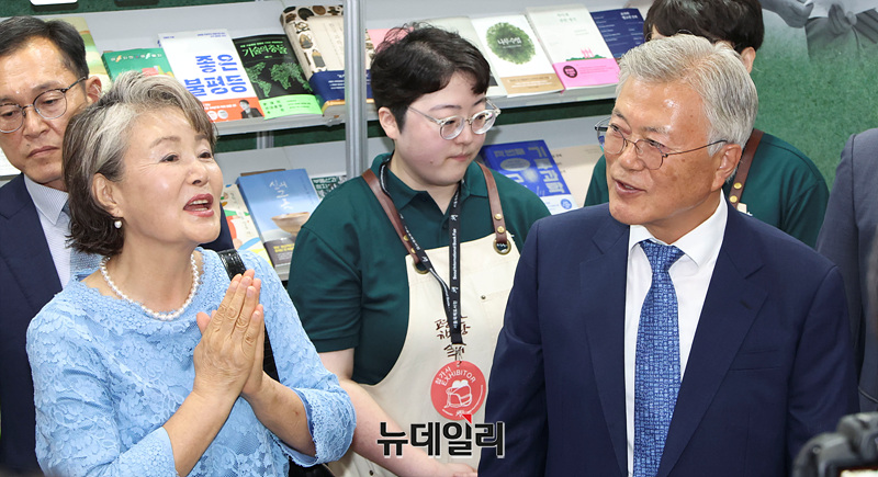 [포토] '평산책방' 부스 둘러보는 문재인 전 대통령