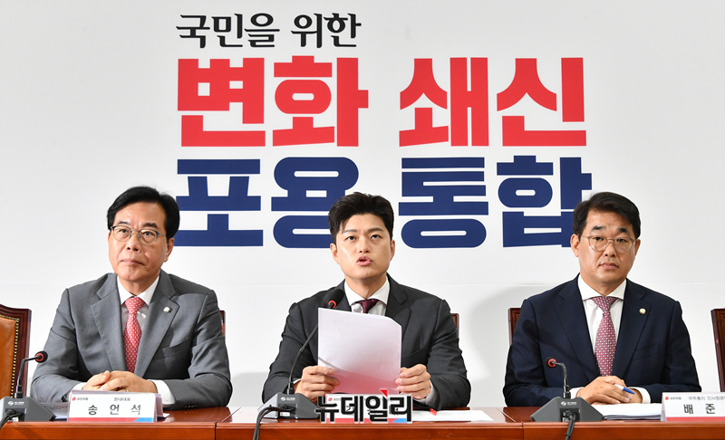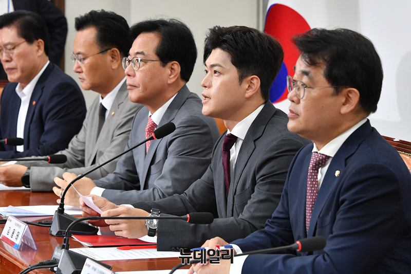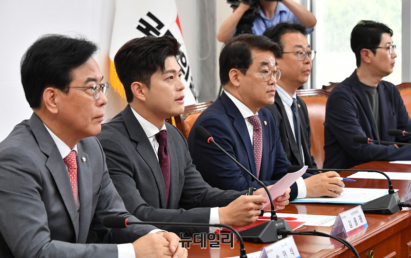 김용태 국민의힘 비상대책위원장이 19일 국회에서 열린 비리백화점 이재명 정부 인사청문회 대책회의에서 발언을 하고 있다.