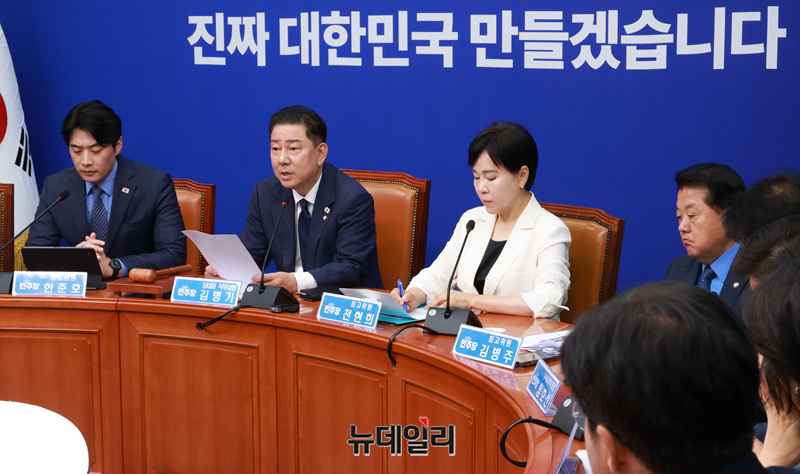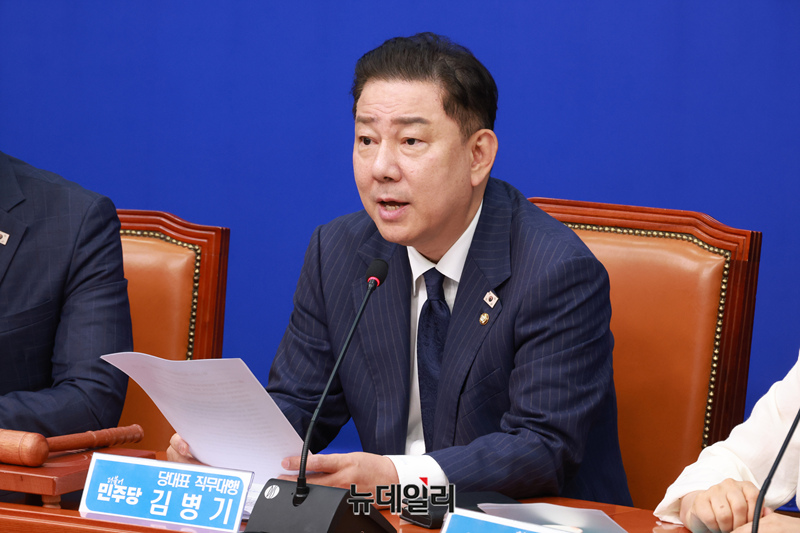 김병기 더불어민주당 대표 직무대행 겸 원내대표가 23일 오전 국회에서 열린 최고위원회의에 참석해 모두발언을 하고 있다.