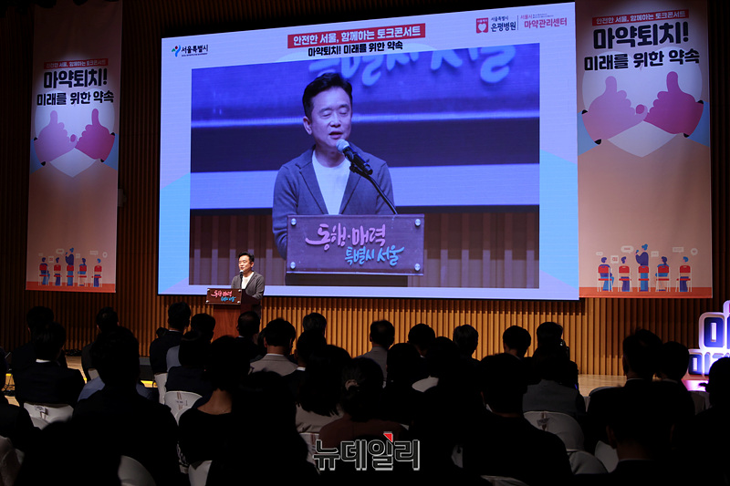 남경필 은구(마약 예방 치유 단체) 대표가 23일 오후 서울시청에서 열린 세계 마약 퇴치의 날 기념행사에서 축사를 하고 있다.