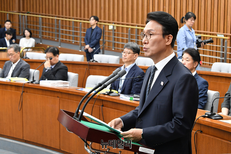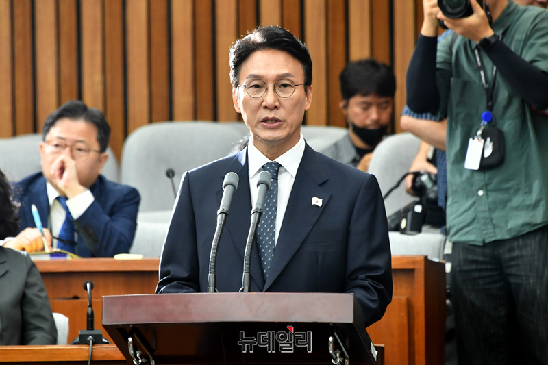 김민석 국무총리 후보자가 24일 국회에서 열린 인사청문회에 출석해 인사말을 하고 있다.