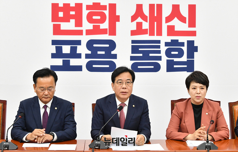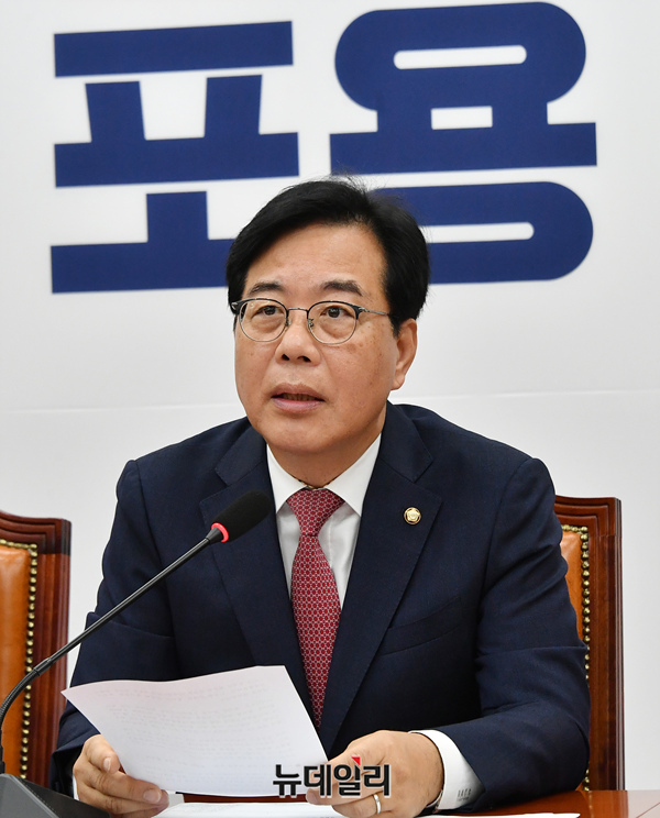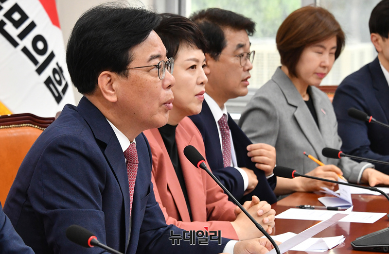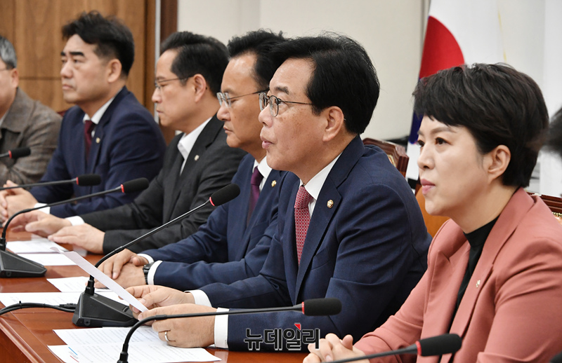 송언석 국민의힘 원내대표가 24일 오전 국회에서 열린 원내대책회의에서 모두발언을 하고 있다.