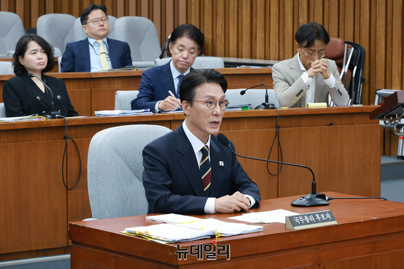 김민석 국무총리 후보자가 25일 국회에서 열린 인사청문회에서 의원들의 질문에 답하고 있다.