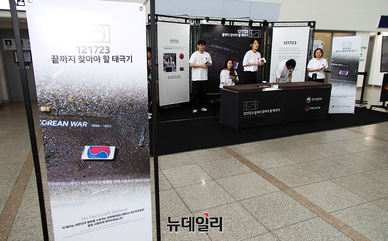국가보훈부와 한화가 25일 오전 서울역KTX역사 2층 대합실에서 '121723 끝까지 찾아야 할 태극기 캠페인'을 진행하고 있다.보훈부는 2025년 6·25전쟁 75주년 계기 한화의 K9 자주포 철로 지금까지 집으로 돌아오지 못한 국군 전사자 121,723명의 호국영웅을 상징하는 12만 1,723개의 고유번호가 부여된 태극기 배지를 제작했다이번 캠페인은 지난 2020년 6·25전쟁 70주년(122609 태극기), 2023년 6·25전쟁 정전70년(121879 태극기)에 이어 세 번째로 진행된다.보훈부X한화는 코레일과 함께 하루 동안 서울역 KTX 역사 2층 대합실에서 '121723 끝까지 찾아야 할 태극'기 캠페인 특별 부스를 운영하고 오전 10시부터 오후 8시까지 태극기 배지를 무료 배포한다.