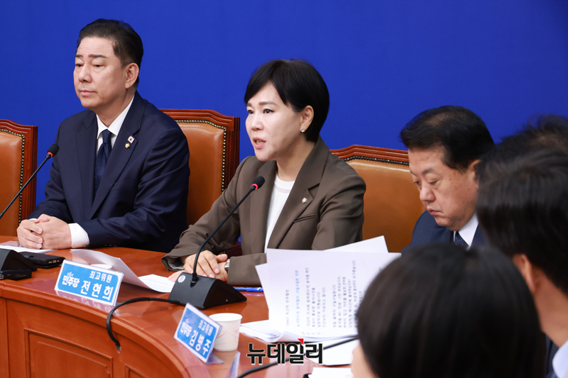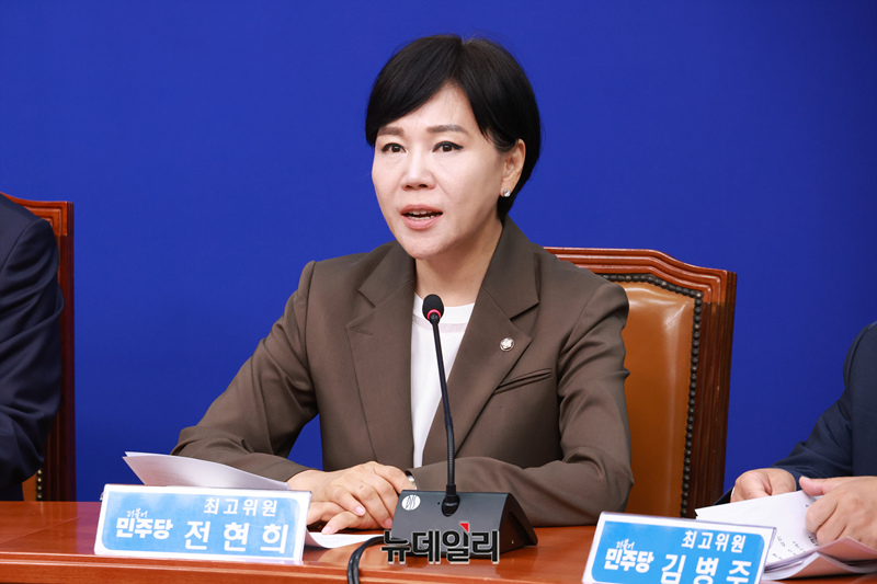 전현희 더불어민주당 최고위원이 27일 오전 국회에서 열린 최고위원회의에서 모두발언을 하고 있다.
