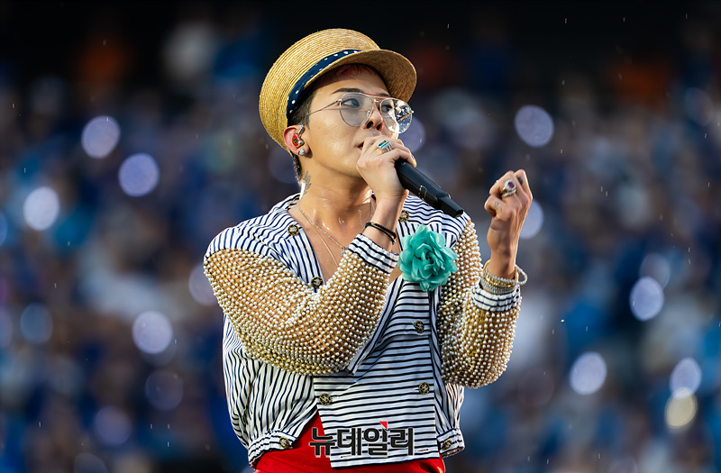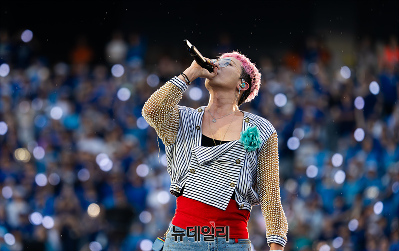 가수 지드래곤이 28일 오후 인천 서구 인천아시아드 주경기장에서 열린 '싸이 흠뻑쇼 SUMMER SWAG 2025'에서 인사말을 하고 있다. (인천=서성진 기자)