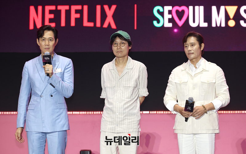 배우 이정재가 28일 오후 서울 중구 서울광장에서 열린 넷플릭스 '오징어 게임' 팬이벤트 행사에서 인사말을 하고 있다.이날 팬 이벤트에는 황동혁 감독을 비롯해 배우 이정재, 이병헌, 임시완, 강하늘, 위하준, 박규영, 이진욱, 박성훈, 양동근, 강애심, 조유리, 채국희, 이다윗, 노재원, 전석호, 최승현, 이서환, 원지안, 김법래, 김시은, 박해수, 정호연, 김주령, 아누팜 트리파티, 이유미 등 출연자들이 함께했다.오징어 게임 시즌3 피날레는 넷플릭스와 서울시가 공동주최하는 '2025 K콘텐츠 서울여행주간 오징어 게임 퍼레이드’ 행사로 세종대로 일대에서 진행됐다.오징어게임 시즌3는 자신만의 목적을 품고 다시 참가한 게임에서 가장 친한 친구를 잃고만 ‘기훈’과, 정체를 숨긴 채 게임에 숨어들었던 ‘프론트맨’, 그리고 그 잔인한 게임 속에서 살아남은 참가자들의 마지막 운명을 그린 이야기다.