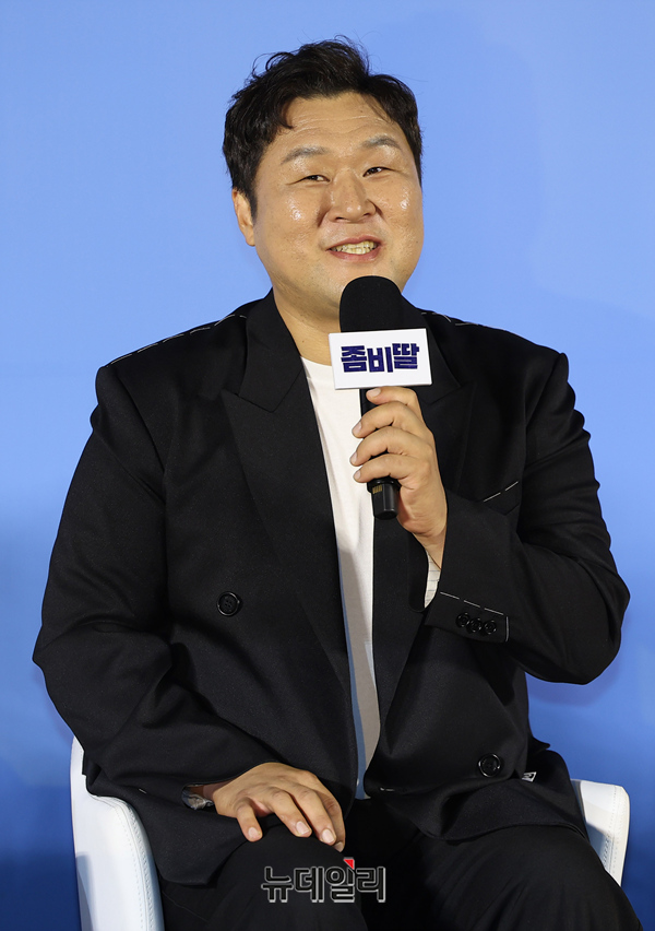 배우 윤경호가 30일 오전 서울 CGV용산아이파크몰에서 열린 영화 ‘좀비딸(감독 필감성)’ 제작보고회에서 인사말을 하고 있다.