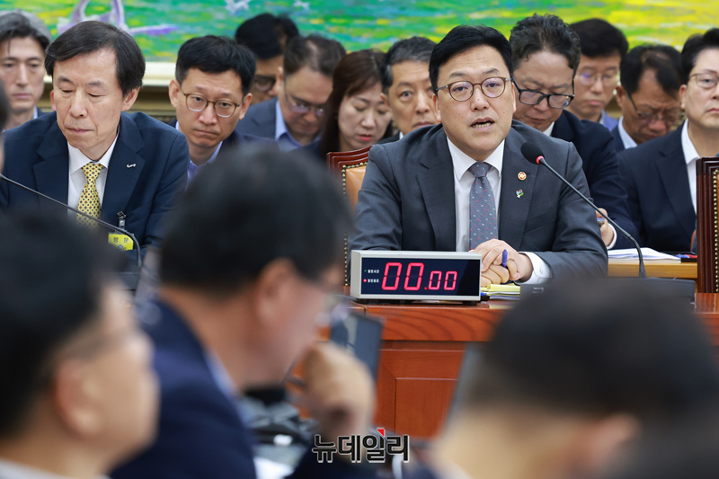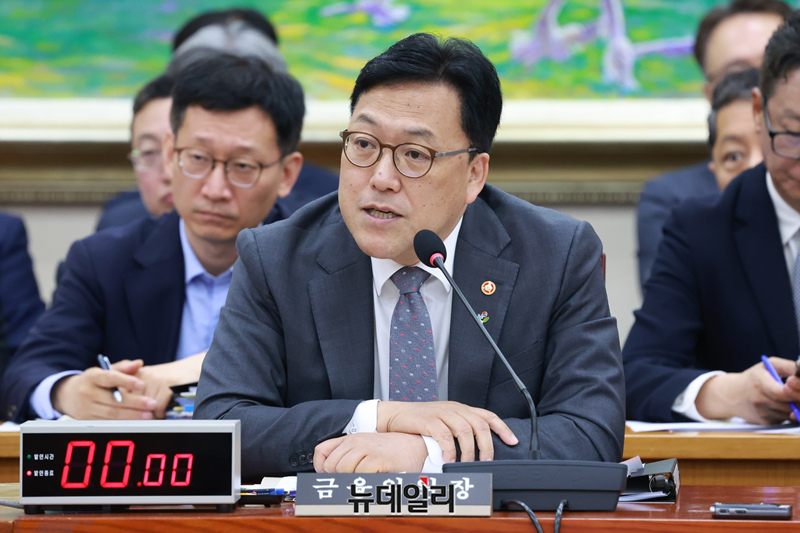김병환 금융위원장이 30일 국회에서 열린 정무위원회 전체회의에 출석해 의원들의 질문에 답하고 있다.