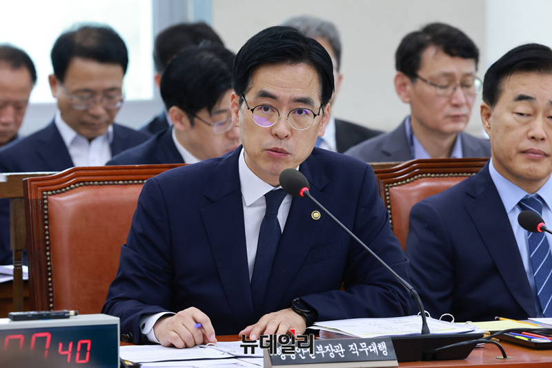 김민재 행정안전부 장관 직무대행이 30일 오전 국회 행정안전위원회 전체회의에 참석해 의원들의 질문에 답하고 있다.
