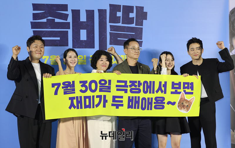 좀비딸 주연배우들이 30일 오전 서울 CGV용산아이파크몰에서 열린 영화 ‘좀비딸(감독 필감성)’ 제작보고회에서 포즈를 취하고 있다.