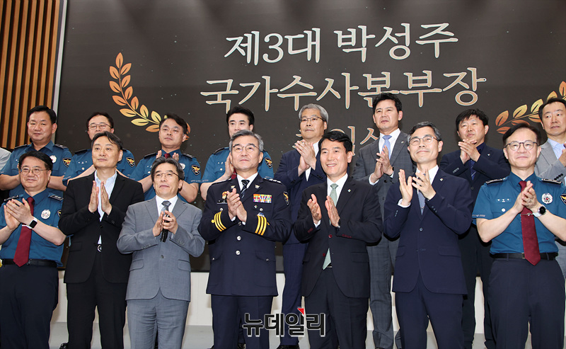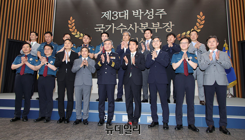 [포토] 기념촬영하는 박성주 신임 국수본부장