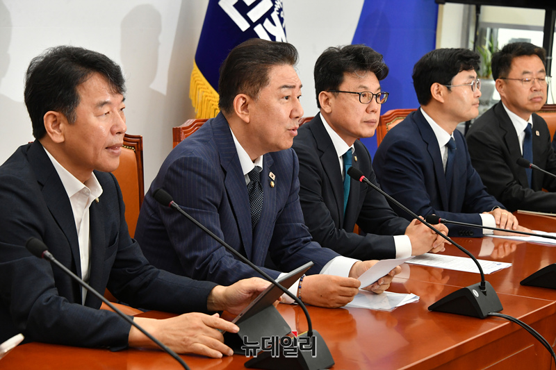 김병기 더불어민주당 당대표 직무대행 겸 원내대표가 1일 국회에서 열린 원내대책회의에서 발언하고 있다.