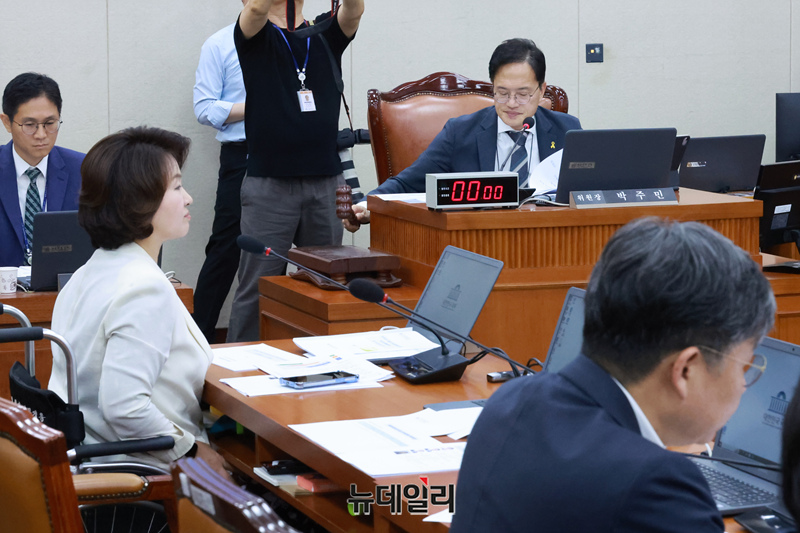 박주민 국회 보건복지위원장이 1일 오전 국회에서 열린 보건복지위원회 전체회의에서 의사봉을 두드리고 있다.