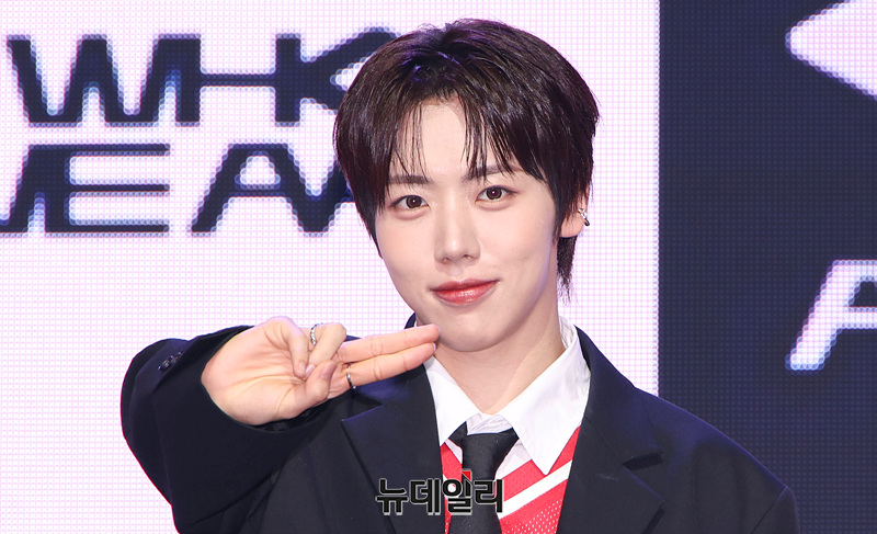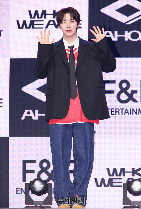 보이그룹 아홉(AHOF) 차웅기가 1일 오후 서울 광진구 예스24 라이브홀에서 열린 첫 번째 미니앨범 '후 위 아(WHO WE ARE)' 데뷔 쇼케이스에서 포즈를 취하고 있다.
