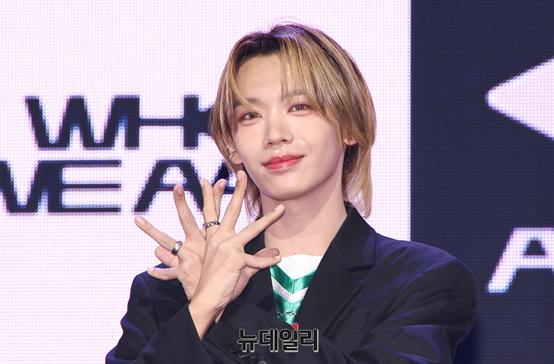 보이그룹 아홉(AHOF) 장슈아이보가 1일 오후 서울 광진구 예스24 라이브홀에서 열린 첫 번째 미니앨범 '후 위 아(WHO WE ARE)' 데뷔 쇼케이스에서 포즈를 취하고 있다.