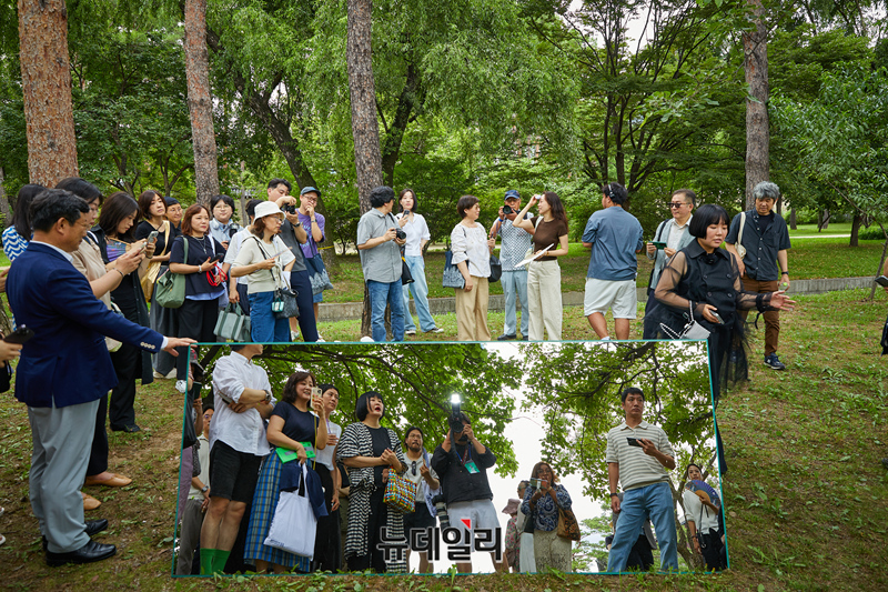 이와 함께, 경복궁 생과방에서는 국가유산의 아름다움과 가치를 담은 ‘국가유산채널’ 영상을 감상할 수 있다. 관람객들은 영상을 보며 쉼과 사색을 즐길 수 있다.이번 전시는 케이팝 가수 슈퍼주니어 ‘예성’이 오디오 가이드로 참여했다. 관람객들은 동심원(同心圓) 작품을 예성의 목소리와 함께 둘러보며 감상할 수 있다.전시는 경복궁에 방문한 관람객이라면 누구나 예약 없이 무료로 관람 할 수 있다(경복궁 입장료 별도). 자세한 사항은 국가유산진흥원 누리집(www.kh.or.kr)을 참조하거나 국가유산진흥원 헤리티지미디어팀(02-3011-2661)으로 문의하면 된다. (사진=국가유산진흥원)