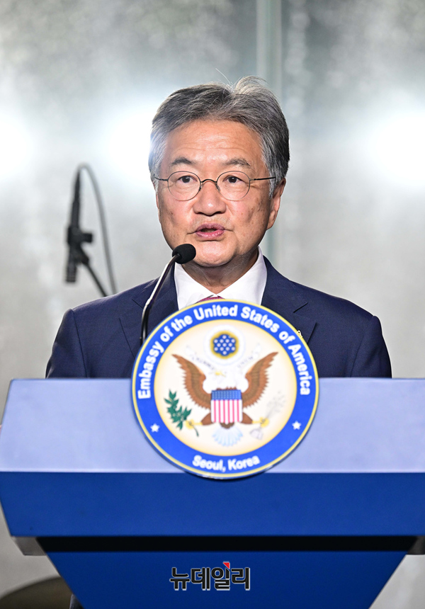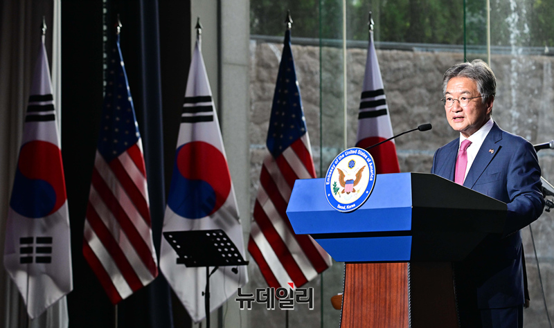 조셉 윤 주한 미국대사대리가 2일 오후 서울 용산구 그랜드 하얏트 호텔 그랜드 볼룸에서 열린 미국 독립기념일 행사에서 기념사를 하고 있다. (사진=공동취재단)