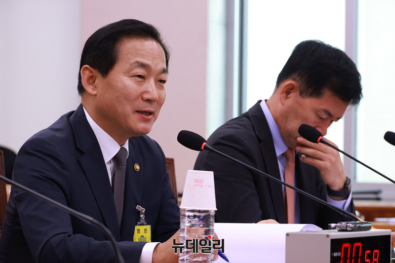 이두희 국방부장관 직무대행이 3일 오전 국회에서 열린 법제사법위원회 전체회의에서 의원들의 질문에 답하고 있다.