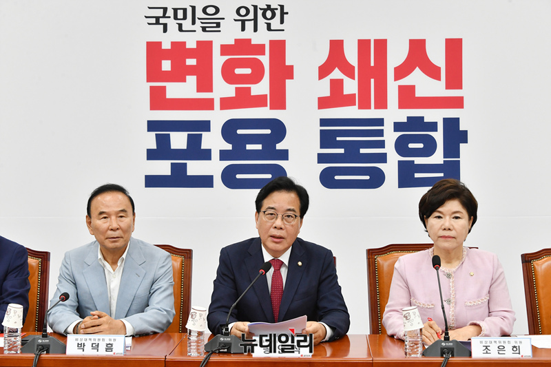 송언석 국민의힘 비상대책위원장 겸 원내대표가 3일 오전 국회에서 열린 비상대책위원회의에서 모두발언을 하고 있다.