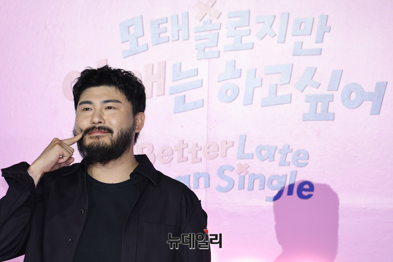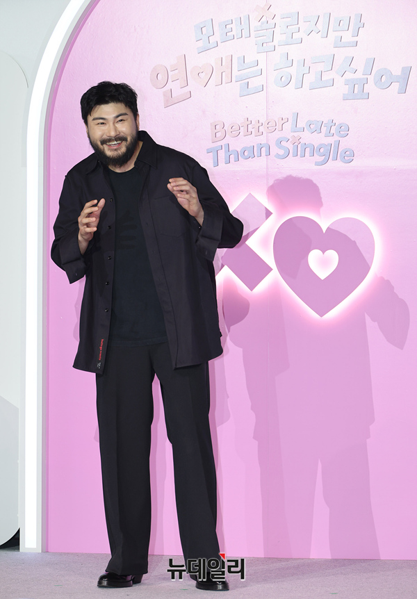 가수 카더가든이 3일 오전 서울 CGV용산아이파크몰에서 열린 넷플릭스 예능 '모태솔로지만 연애는 하고 싶어' 제작보고회에서 포즈를 취하고 있다.