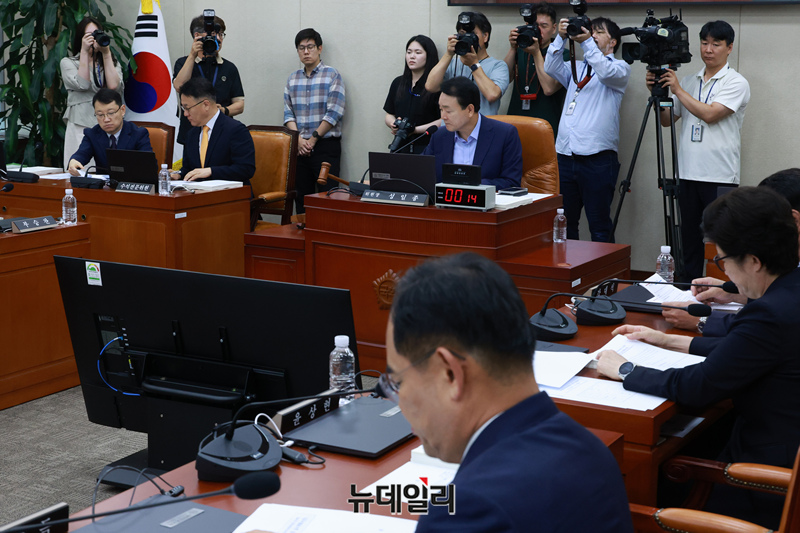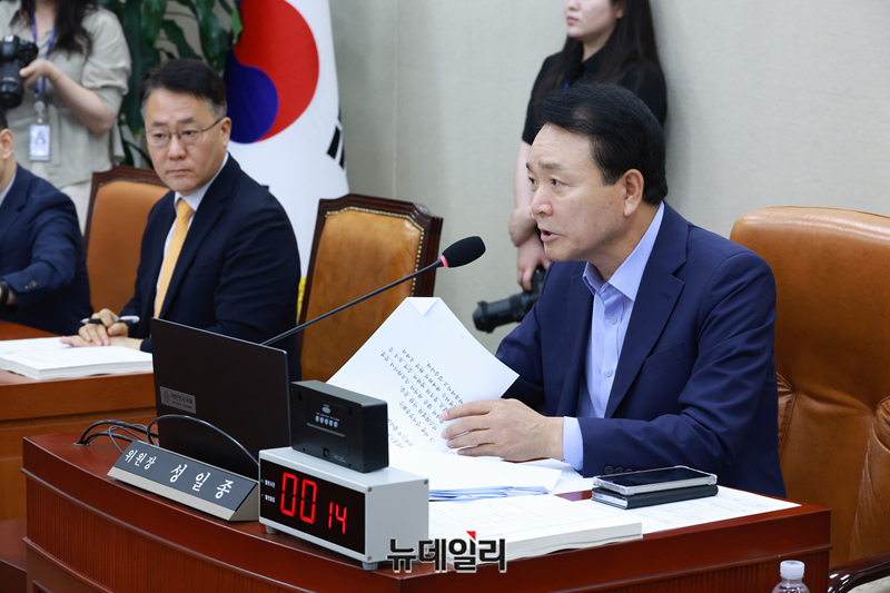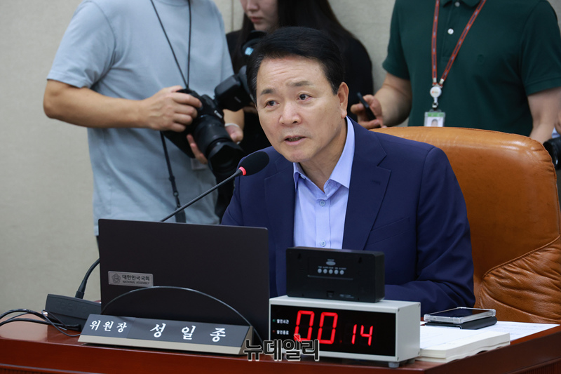 성일종 국회 국방위원장이 8일 오후 국회에서 열린 국방위원회 전체회의에서 국무위원후보자(국방부 장관 안규백) 인사청문회 실시 계획서 채택의 건 가결을 선언하고 있다.