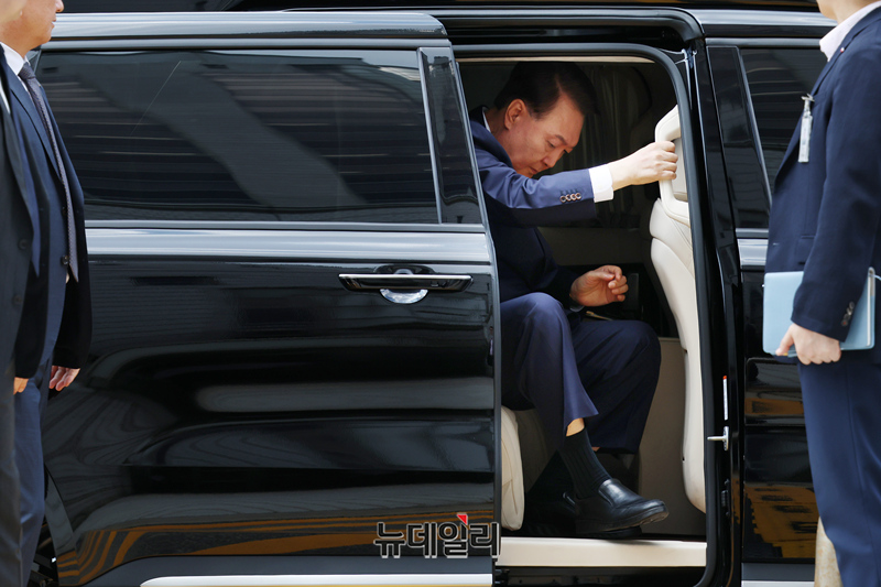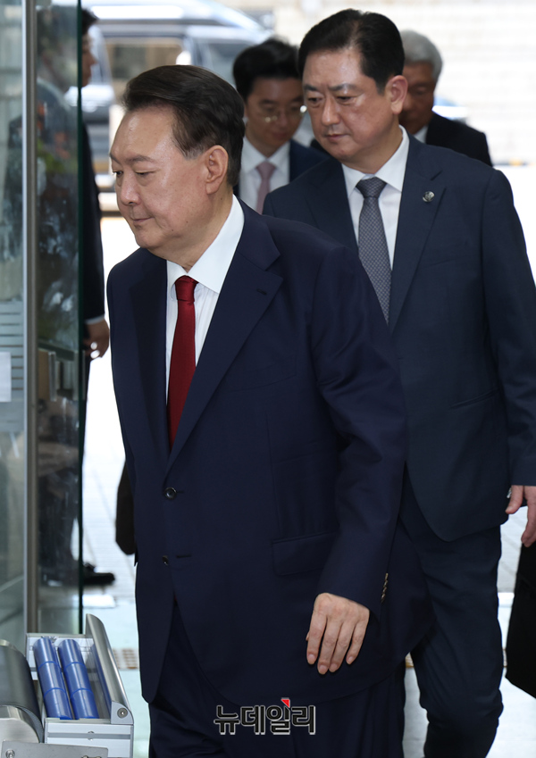 윤석열 전 대통령이 9일 오후 서울 서초구 서울중앙지법에서 열린 영장실질심사(구속 전 피의자 심문)에 출석하고 있다.