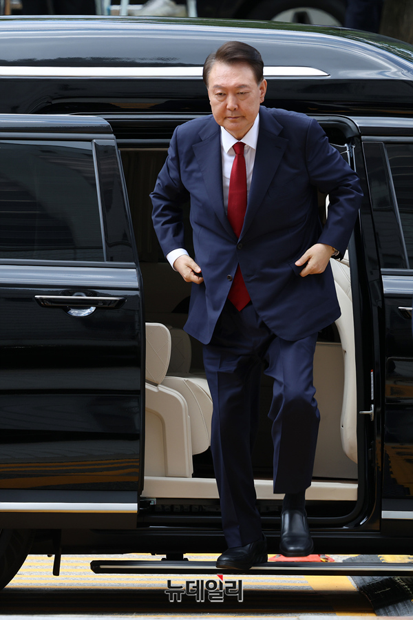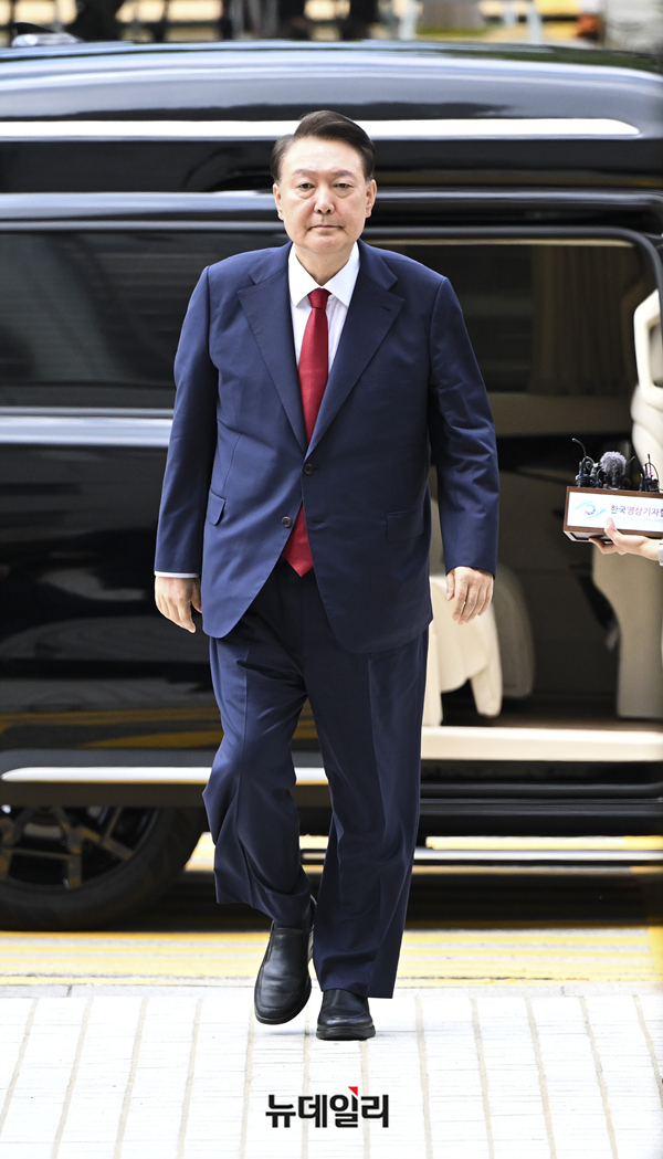 윤석열 전 대통령이 9일 오후 서울 서초구 서울중앙지법에서 열린 영장실질심사(구속 전 피의자 심문)에 출석하고 있다.