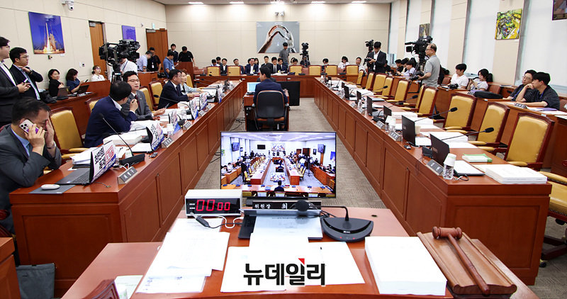 이날 최민희 위원장은 개회하기 앞서 산회를 선언하고 자리를 나섰다.
