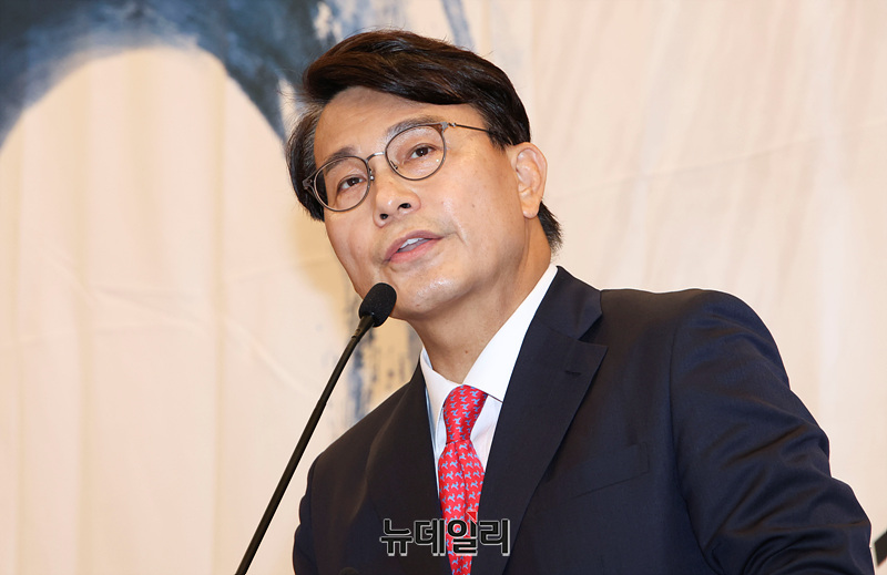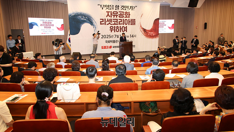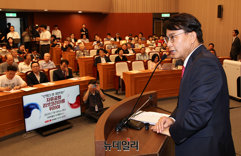 윤상현 국민의힘 의원이 14일 오후 국회박물관에서 열린 '무엇을 할 것인가? 자유공화 리셋코리아를 위하여' 긴급토론회에서 인사말을 하고 있다.