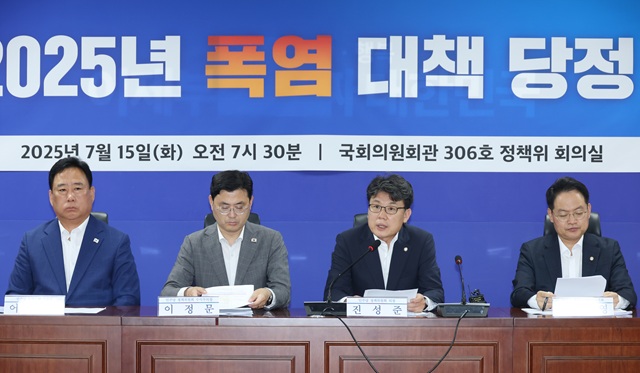 당정이 7~8월 전기요금 누진제 구간을 완화하기로 했다. 또 저소득층 등 취약계층에는 최대 70만1300원의 연간 전체 에너지 바우처를 일괄 지급하는 등 폭염대비책을 마련했다.김원이 더불어민주당 의원은 15일 국회에서 열린 폭염 대책 당정 간담회를 마친 뒤 취재진과 만나 "올해 역대 최고의 폭염이 예측되는 가운데 국민의 전력 사용에 불편함이 없도록 누진제 구간을 완화해 냉방 사용 전기세 부담을 전체적으로 줄여 나가겠다"고 밝혔다.전기요금 1단계 누진 구간은 기존 0~200kW/h에서 0~300kW/h로, 2단계는 200~400kW/h에서 300~450kW/h로 늘릴 계획이다.김 의원은 "지난 8일 전력수요는 95.7kW/h로 역대 전력수요 2위를 기록했다"며 "이번 여름철 최대 전력 수요가 역대 최고치를 찍을 것으로 예측되고 있어 전력 공급 능력을 충분히 확보해야 한다"고 말했다.당정은 취약계층을 위해서는 최대 70만1300원인 에너지바우처를 일괄 지급하고 전기요금 감면 한도를 월 2만 원으로 확대하기로 했다.폭염 고위험 사업장에서 '안전 5대 수칙' 이행 여부 불시 점검도 추진한다. 폭염 안전 5대 수칙은 시원한 물 제공, 냉방장치 설치, 2시간마다 20분 휴식, 개인 보냉장구 지급, 온열 질환 환자·의심자 발생시 즉시 119 신고 등이다.김주영 민주당 의원은 "폭염 작업시 2시간마다 20분 휴식 등 개정된 산업안전보건규칙이 17일부터 시행된다"며 "현장 중심의 폭염안전대책단을 가동하고 5대 수칙이 준수될 수 있도록 지원할 것"이라고 설명했다.