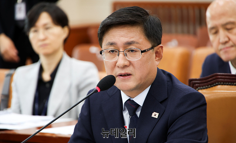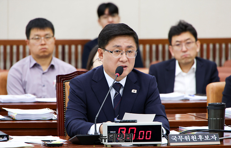 김성환 환경부 장관 후보자가 15일 오전 국회 환경노동위원회 전체회의장에서 열린 인사청문회에서 의원들의 질의에 답변하고 있다.